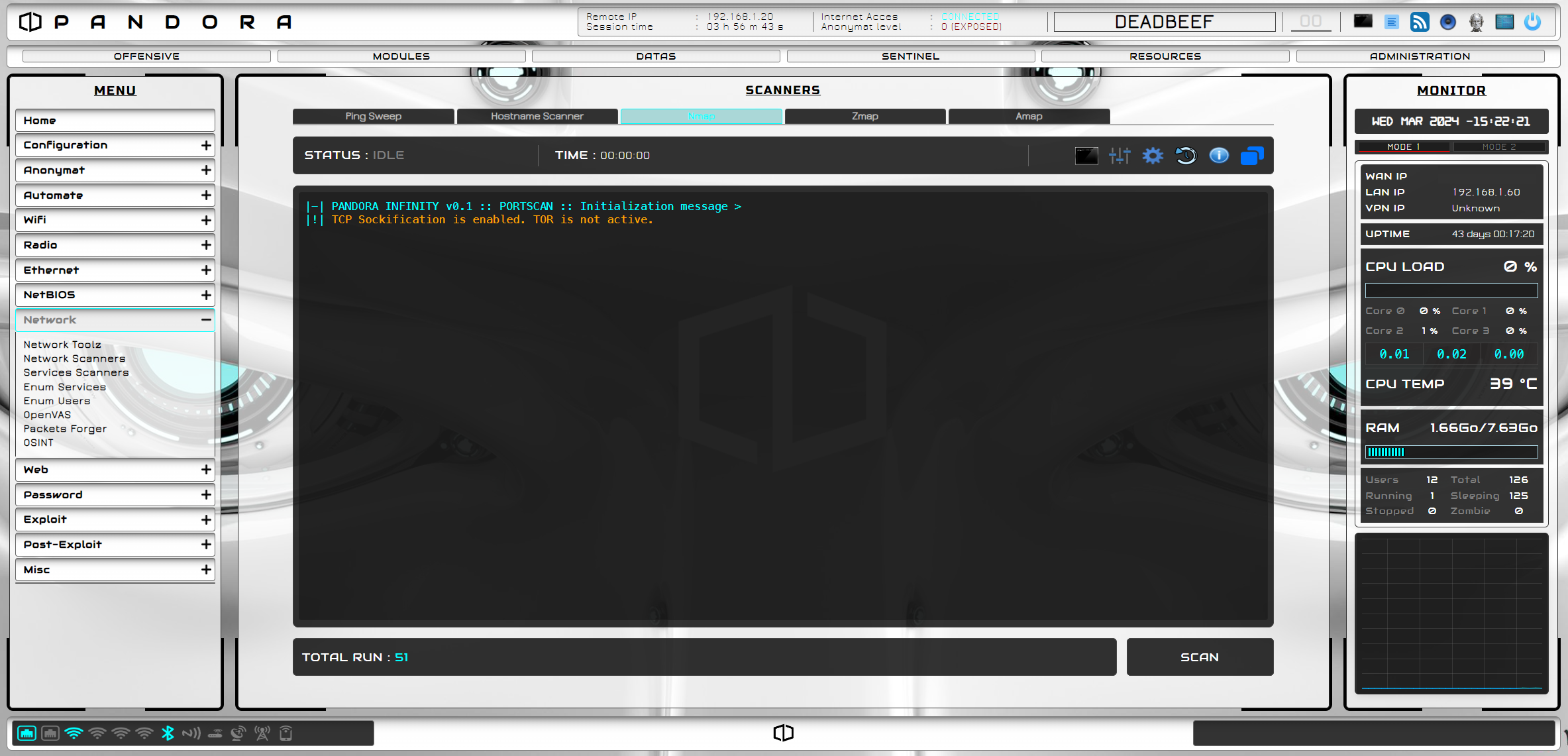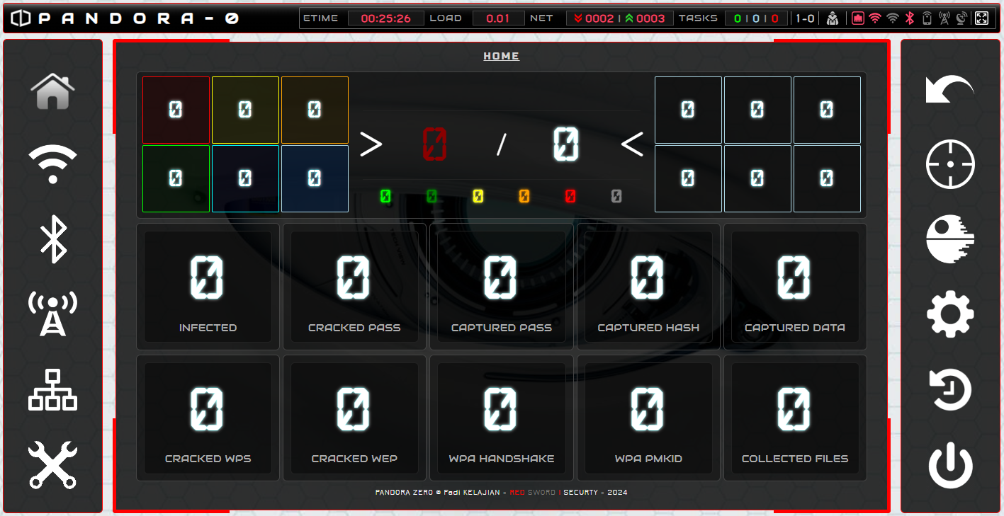 PANDORA ZERO is dedicated to the audit/discovery of your digital environment and designed to be controlled from a smartphone/tablet in landscape mode with two thumbs.